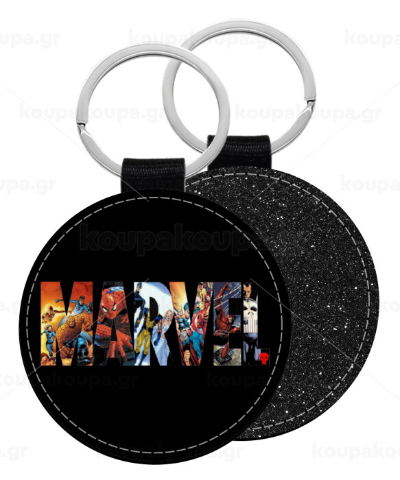 MARVEL Black, Μπρελόκ Δερματίνη, στρογγυλό ΜΑΥΡΟ (5cm)