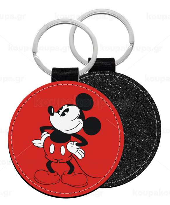 Mickey Classic, Μπρελόκ Δερματίνη, στρογγυλό ΜΑΥΡΟ (5cm)