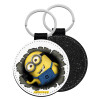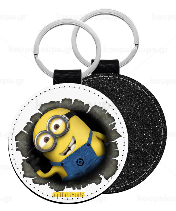 Minions hi, Μπρελόκ Δερματίνη, στρογγυλό ΜΑΥΡΟ (5cm)