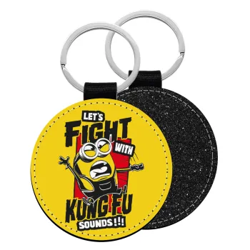 Minions Let's fight with kung fu sounds, Μπρελόκ Δερματίνη, στρογγυλό ΜΑΥΡΟ (5cm)