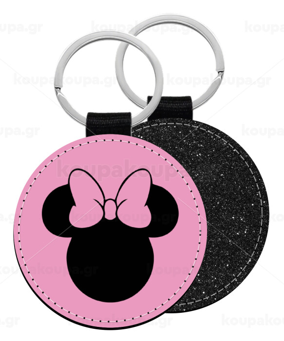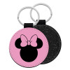 mouse girl, Μπρελόκ Δερματίνη, στρογγυλό ΜΑΥΡΟ (5cm)