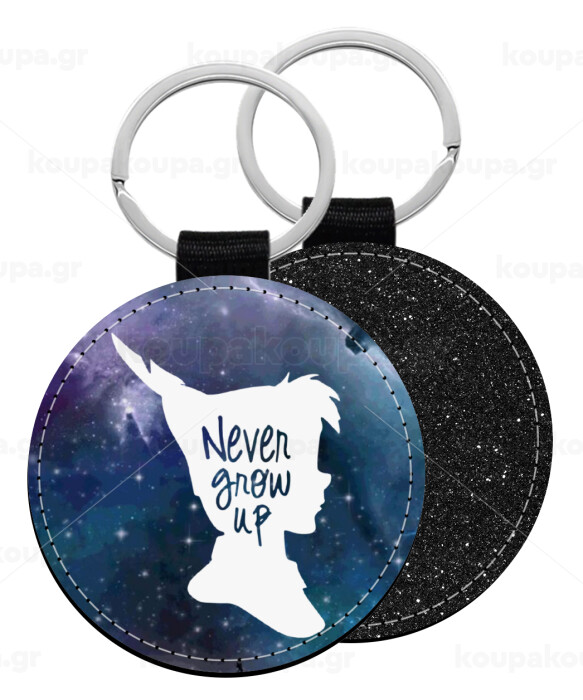 Never Grow UP, Μπρελόκ Δερματίνη, στρογγυλό ΜΑΥΡΟ (5cm)