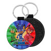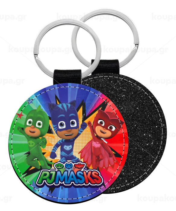 PJ masks, Μπρελόκ Δερματίνη, στρογγυλό ΜΑΥΡΟ (5cm)