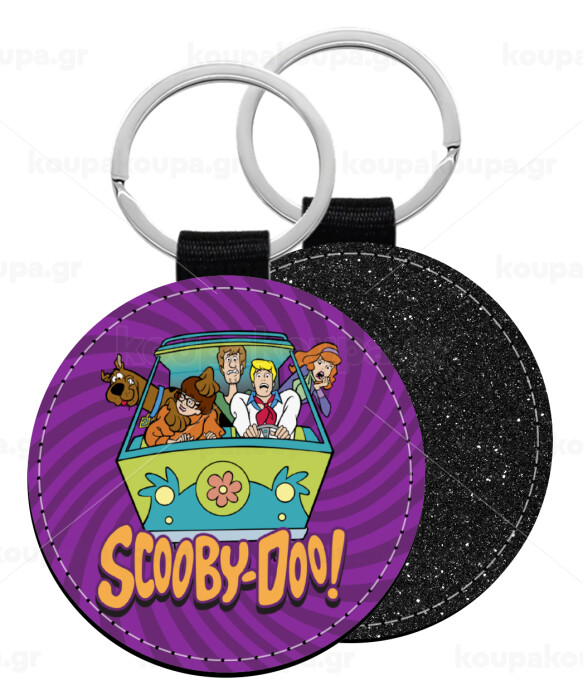 Scooby Doo car, Μπρελόκ Δερματίνη, στρογγυλό ΜΑΥΡΟ (5cm)