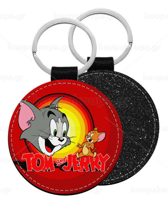 Tom and Jerry, Μπρελόκ Δερματίνη, στρογγυλό ΜΑΥΡΟ (5cm)