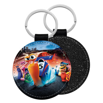Turbo, Μπρελόκ Δερματίνη, στρογγυλό ΜΑΥΡΟ (5cm)