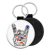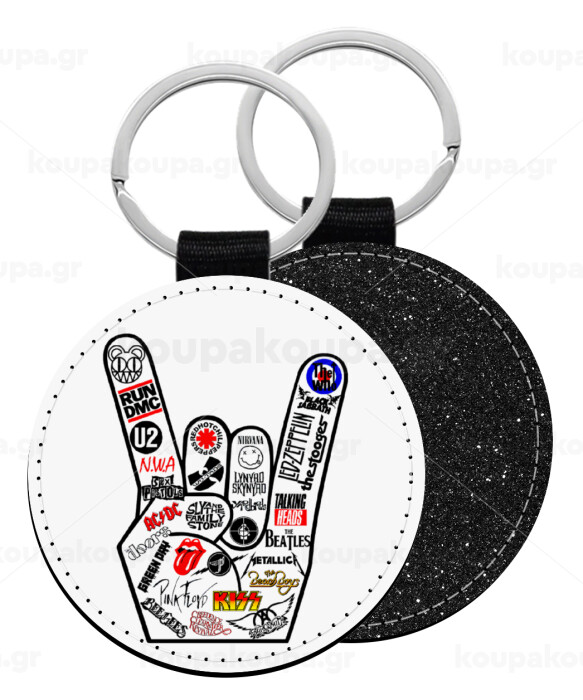 Best Rock Bands hand, Μπρελόκ Δερματίνη, στρογγυλό ΜΑΥΡΟ (5cm)