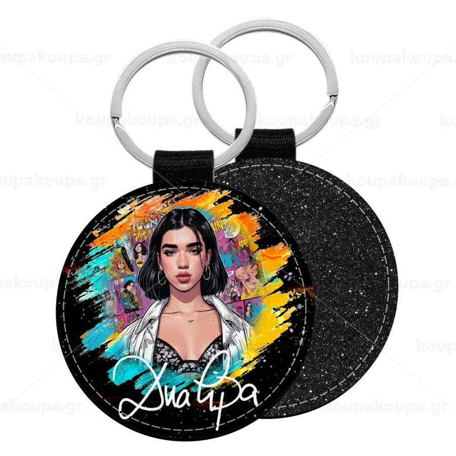 Dua lipa, Μπρελόκ Δερματίνη, στρογγυλό ΜΑΥΡΟ (5cm)
