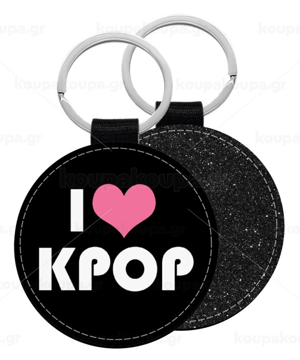 I Love KPOP, Μπρελόκ Δερματίνη, στρογγυλό ΜΑΥΡΟ (5cm)