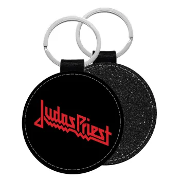 Judas Priest, Μπρελόκ Δερματίνη, στρογγυλό ΜΑΥΡΟ (5cm)