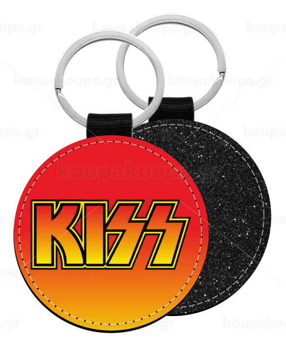 KISS, Μπρελόκ Δερματίνη, στρογγυλό ΜΑΥΡΟ (5cm)