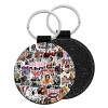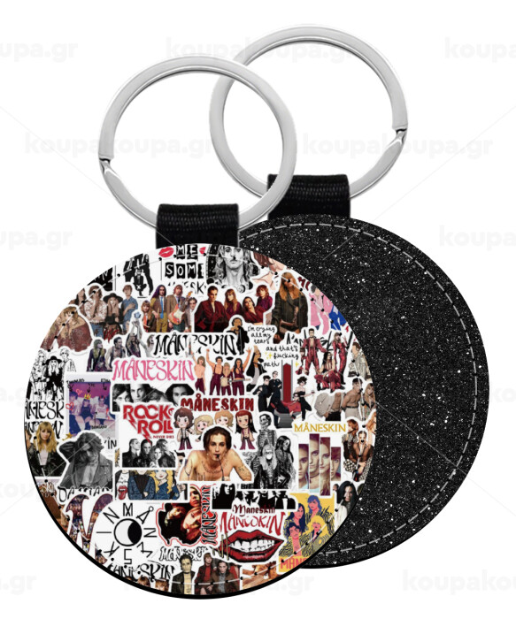 Maneskin stickers, Μπρελόκ Δερματίνη, στρογγυλό ΜΑΥΡΟ (5cm)