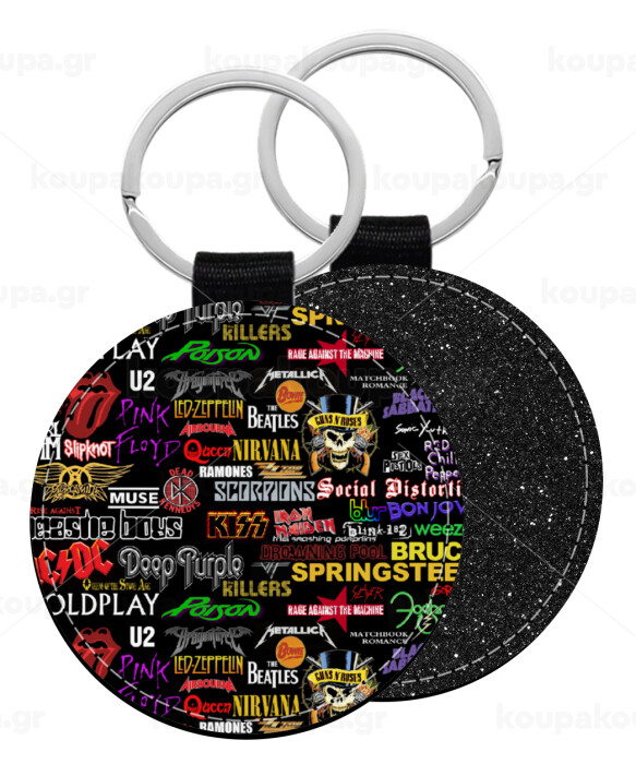 Rock Bands, Μπρελόκ Δερματίνη, στρογγυλό ΜΑΥΡΟ (5cm)