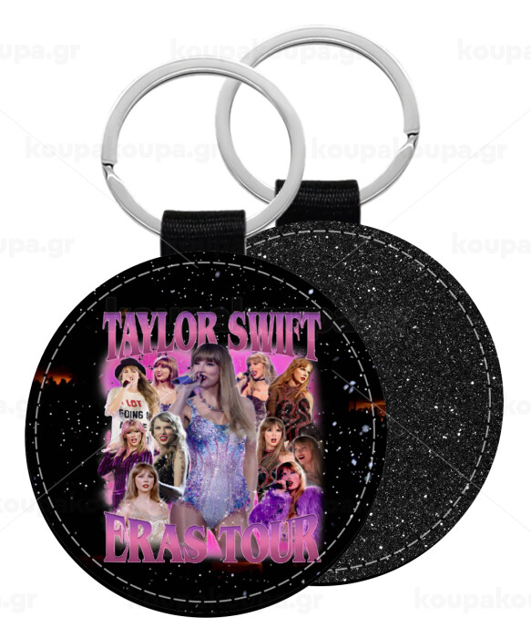 Taylor Swift, Μπρελόκ Δερματίνη, στρογγυλό ΜΑΥΡΟ (5cm)