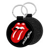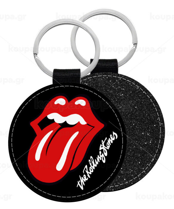 The rolling stones, Μπρελόκ Δερματίνη, στρογγυλό ΜΑΥΡΟ (5cm)