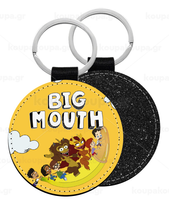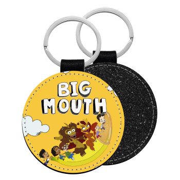 Big mouth, Μπρελόκ Δερματίνη, στρογγυλό ΜΑΥΡΟ (5cm)