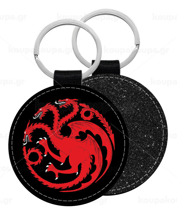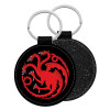 GOT House Targaryen, Fire Blood, Μπρελόκ Δερματίνη, στρογγυλό ΜΑΥΡΟ (5cm)