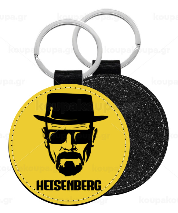 Heisenberg breaking bad, Μπρελόκ Δερματίνη, στρογγυλό ΜΑΥΡΟ (5cm)