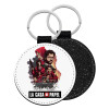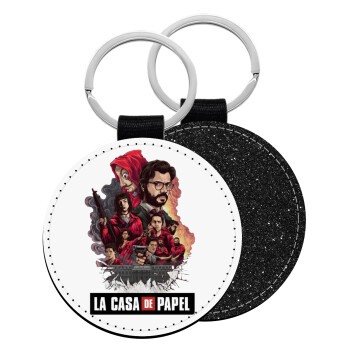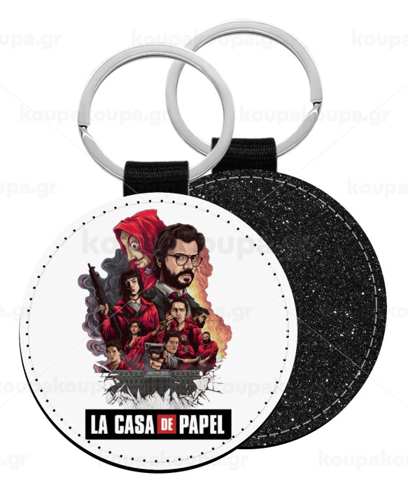 La casa de papel drawing cover, Μπρελόκ Δερματίνη, στρογγυλό ΜΑΥΡΟ (5cm)
