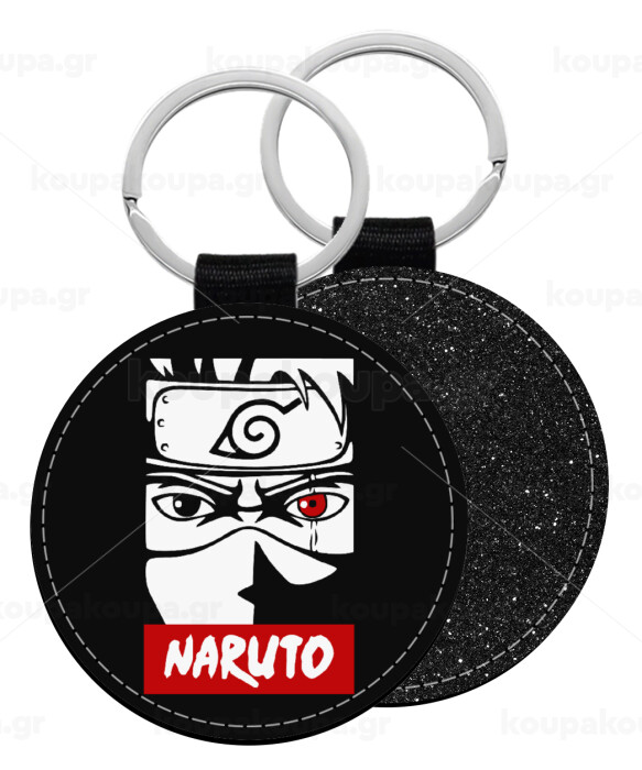 Naruto anime, Μπρελόκ Δερματίνη, στρογγυλό ΜΑΥΡΟ (5cm)