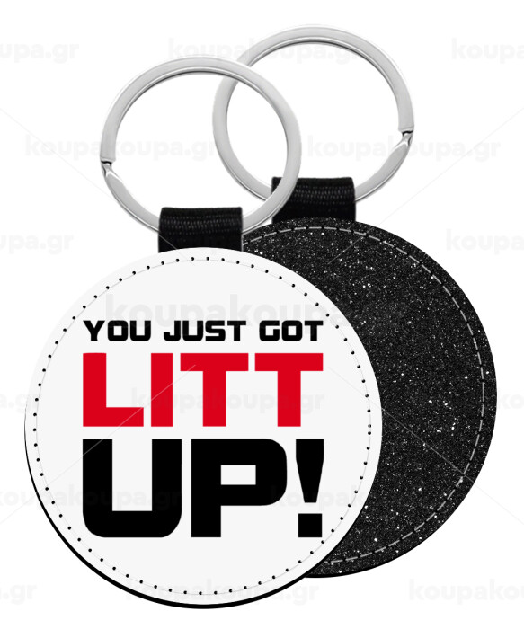 Suits You Just Got Litt Up! , Μπρελόκ Δερματίνη, στρογγυλό ΜΑΥΡΟ (5cm)