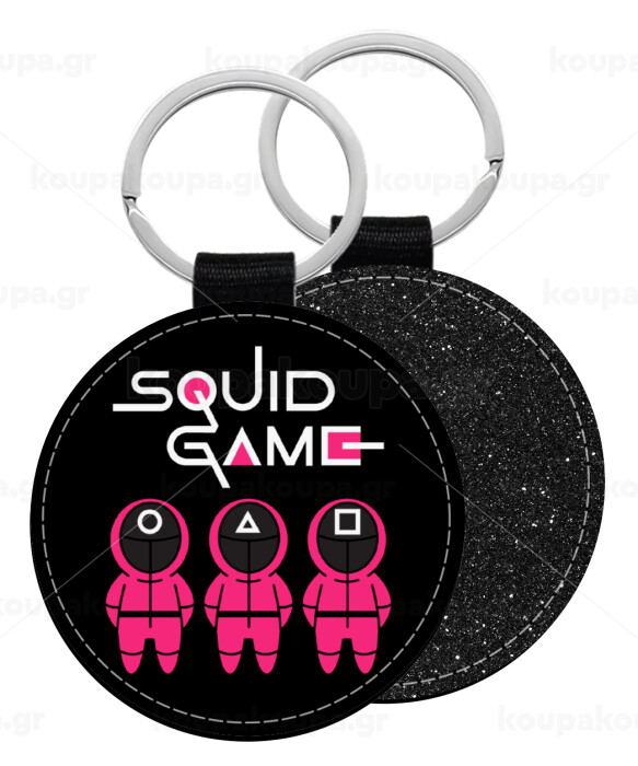 Το παιχνίδι του καλαμαριού, Μπρελόκ Δερματίνη, στρογγυλό ΜΑΥΡΟ (5cm)