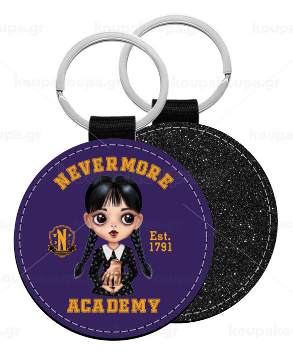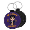 Wednesday Adams, nevermore, Μπρελόκ Δερματίνη, στρογγυλό ΜΑΥΡΟ (5cm)
