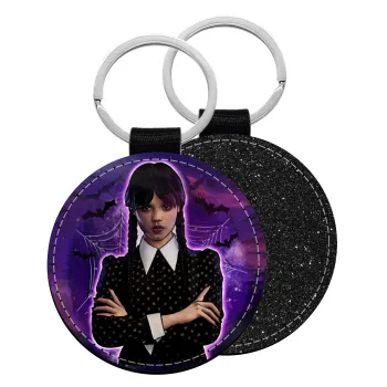 Wednesday moonlight, Μπρελόκ Δερματίνη, στρογγυλό ΜΑΥΡΟ (5cm)