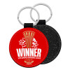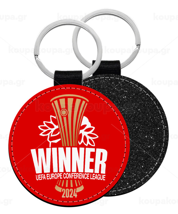 Europa Conference League WINNER, Μπρελόκ Δερματίνη, στρογγυλό ΜΑΥΡΟ (5cm)