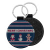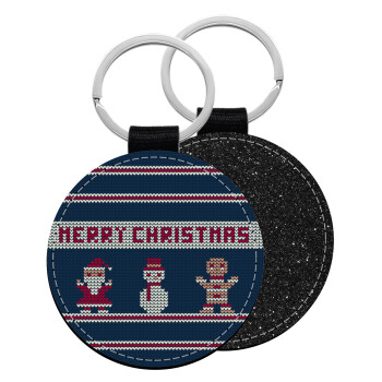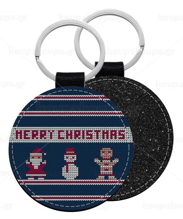 Merry christmas knitted, Μπρελόκ Δερματίνη, στρογγυλό ΜΑΥΡΟ (5cm)