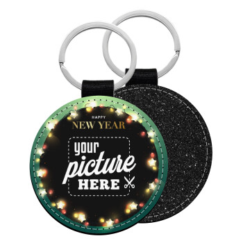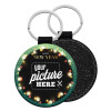 PHOTO xmas lights, Μπρελόκ Δερματίνη, στρογγυλό ΜΑΥΡΟ (5cm)