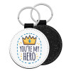 Dad, you are my hero!, Μπρελόκ Δερματίνη, στρογγυλό ΜΑΥΡΟ (5cm)