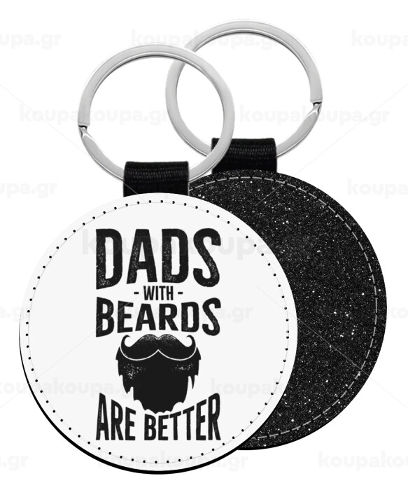 Dad's with beards are better, Μπρελόκ Δερματίνη, στρογγυλό ΜΑΥΡΟ (5cm)