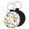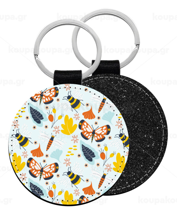 Πεταλούδες, Μπρελόκ Δερματίνη, στρογγυλό ΜΑΥΡΟ (5cm)