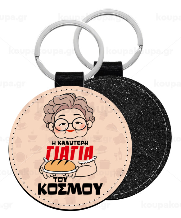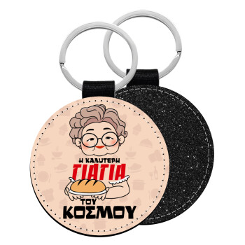 Η καλύτερη γιαγιά του κόσμου!, Μπρελόκ Δερματίνη, στρογγυλό ΜΑΥΡΟ (5cm)