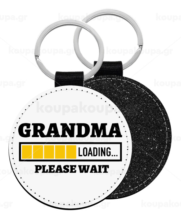 Grandma Loading, Μπρελόκ Δερματίνη, στρογγυλό ΜΑΥΡΟ (5cm)