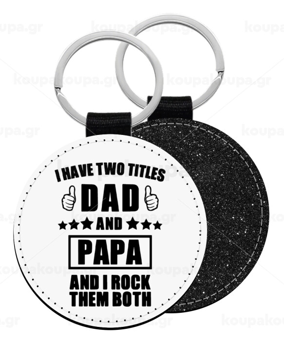 I have two title, DAD & PAPA, Μπρελόκ Δερματίνη, στρογγυλό ΜΑΥΡΟ (5cm)