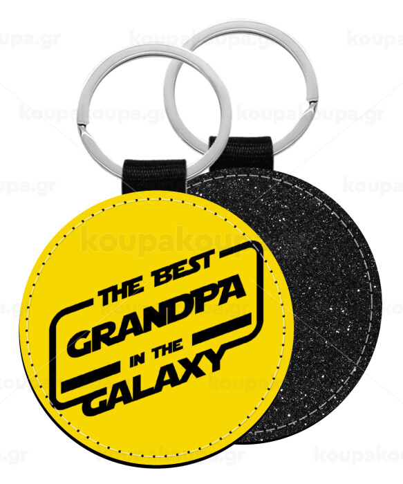 The Best GRANDPA in the Galaxy, Μπρελόκ Δερματίνη, στρογγυλό ΜΑΥΡΟ (5cm)