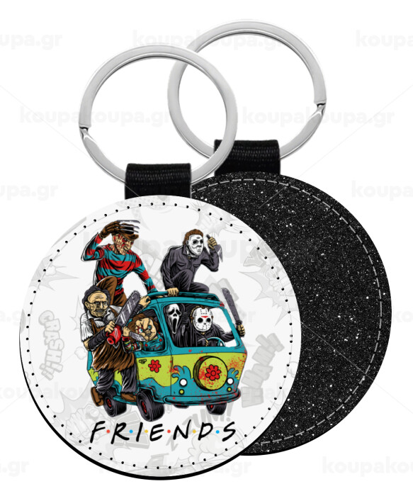Halloween Friends Scooby Doo, Μπρελόκ Δερματίνη, στρογγυλό ΜΑΥΡΟ (5cm)