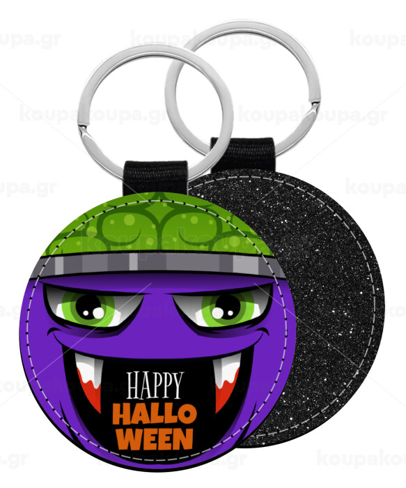 Halloween trick or treat Monster, Μπρελόκ Δερματίνη, στρογγυλό ΜΑΥΡΟ (5cm)