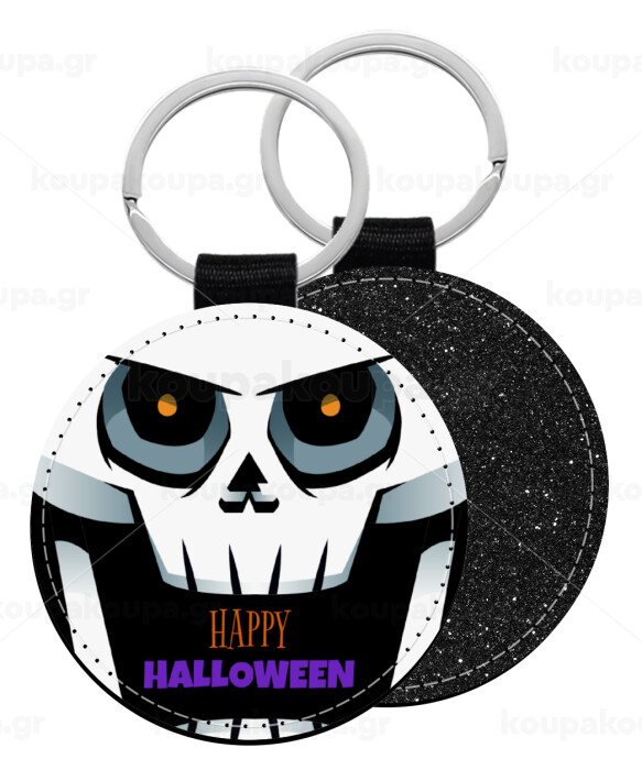 Halloween trick or treat Skeleton, Μπρελόκ Δερματίνη, στρογγυλό ΜΑΥΡΟ (5cm)