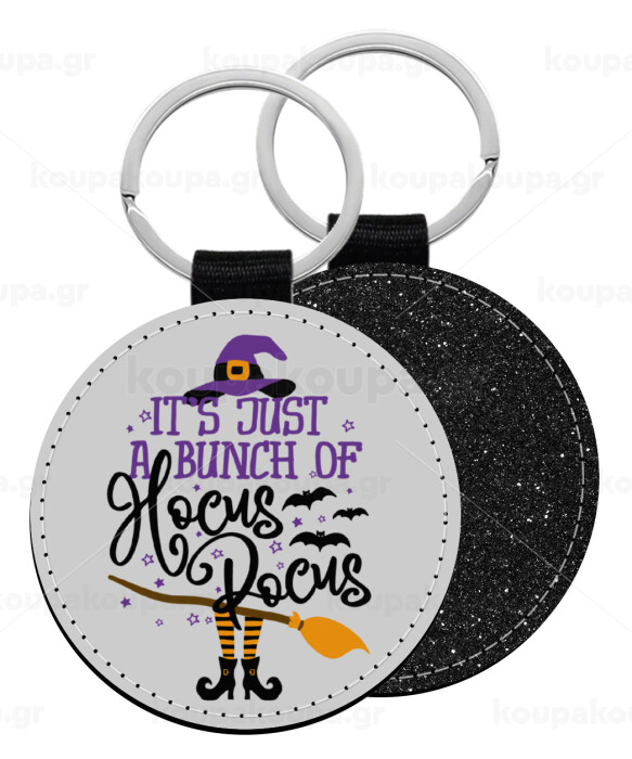 It's just a bunch of hocus pocus - halloween, Μπρελόκ Δερματίνη, στρογγυλό ΜΑΥΡΟ (5cm)