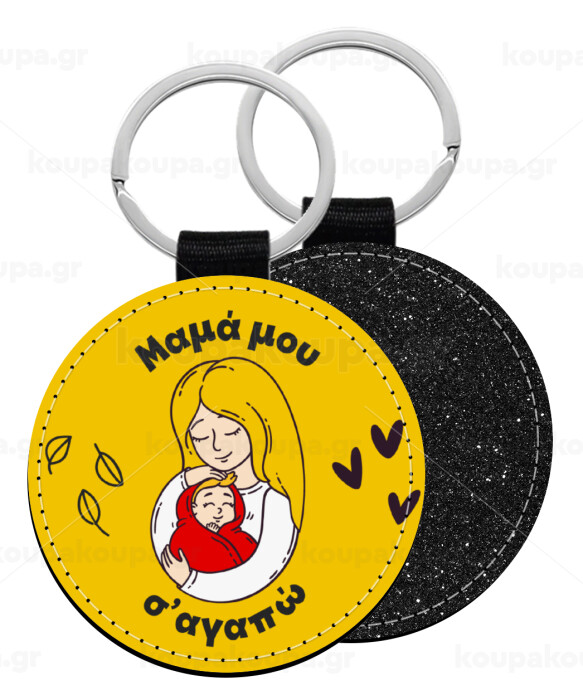 Μανούλα σ'αγαπώ αγκαλιά!, Μπρελόκ Δερματίνη, στρογγυλό ΜΑΥΡΟ (5cm)
