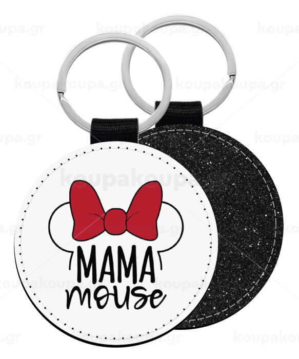 MAMA mouse, Μπρελόκ Δερματίνη, στρογγυλό ΜΑΥΡΟ (5cm)