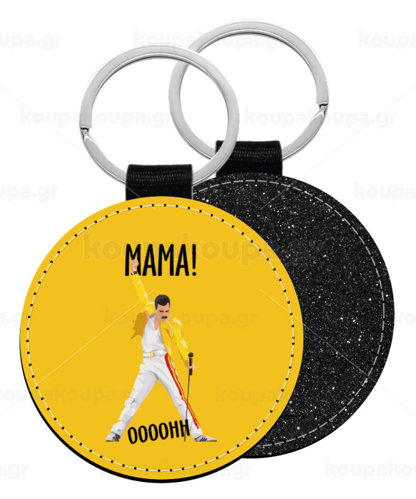mama ooohh!, Μπρελόκ Δερματίνη, στρογγυλό ΜΑΥΡΟ (5cm)