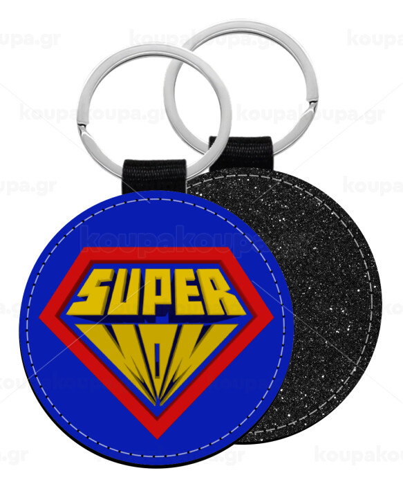 Super Mom 3D, Μπρελόκ Δερματίνη, στρογγυλό ΜΑΥΡΟ (5cm)
