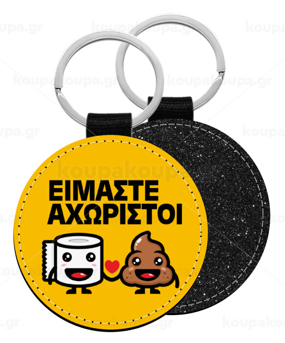 Είμαστε αχώριστοι, Μπρελόκ Δερματίνη, στρογγυλό ΜΑΥΡΟ (5cm)