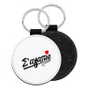 Mπρελόκ από δερματίνη με glitter στην μία πλευρά και στην άλλη δερματίνη μεγάλης αντοχής. Κρίκος ασφάλειας για τα κλειδιά.