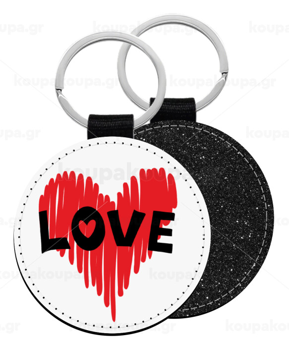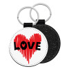 I Love You red heart, Μπρελόκ Δερματίνη, στρογγυλό ΜΑΥΡΟ (5cm)