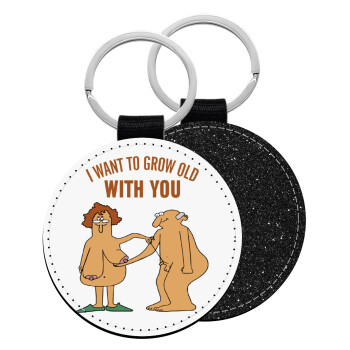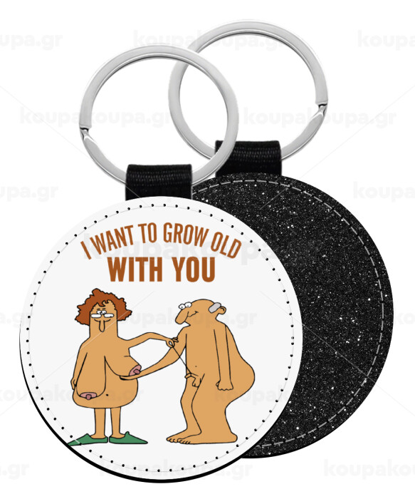 I want to grow old with you, Μπρελόκ Δερματίνη, στρογγυλό ΜΑΥΡΟ (5cm)